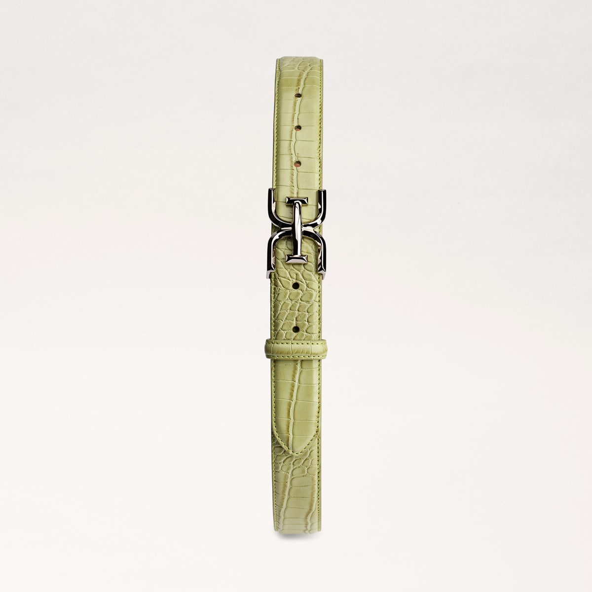 Elevate your everyday style with this exotic leather belt. The slim width snakeskin strap is finished with the iconic double-E monogram plaque buckle to give you a belt that is versatile and easy to match. Iconic double-E logo plaque buckle with ball prong closure Silver-tone finished hardware 1.25" wide feather edge strap with English point tip Snakeskin strap 7 holes for an adjustable fit This belt is best worn sitting on your hips Pairs well with trousers, skirts and more Size: Small (4-6), 33 inches Size: Medium (8-10), 35 inches Size: Large (12-14), 38 inches Size: X-Large (14-16), 41 inches