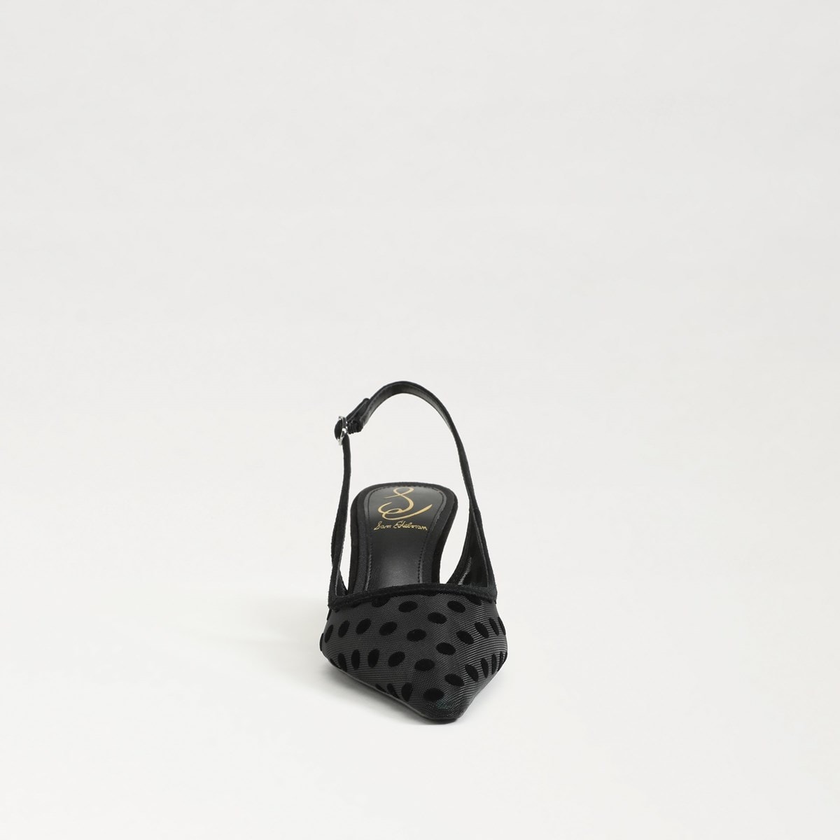 Meet the Bianka Mesh - these mesh pointed slingbacks are adorned with all-over polka dots and a contrast trim. This slingback looks like a surprise party peeking out from your best tailored pieces. Heel Height: 2.4 inches Toe: Pointed Toe Closure: Buckle Material: Fabric & Other Insole: Synthetic