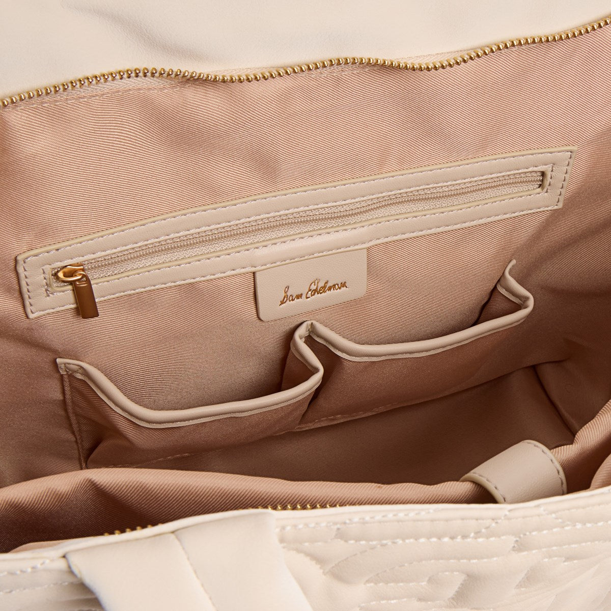 Stay stylish and organized on the go with the Sam Edelman Ethyl Top Zip Tote. Crafted for the modern woman, this sleek tote features a secure top zip closure and a dedicated padded interior sleeve to protect your laptop or tech essentials. With ample space for all your daily necessities and an elegant, polished design, the Ethyl Tote effortlessly transitions from work to play. Perfect for professionals who value both form and function, this tote ensures your devices stay safe while elevating your everyday look with refined, practical style. Material: Coated Nylon Lining: 100% Polyester Dimensions: H 12 inches x W 14 inches x D 5 inches Drop: 10 inches