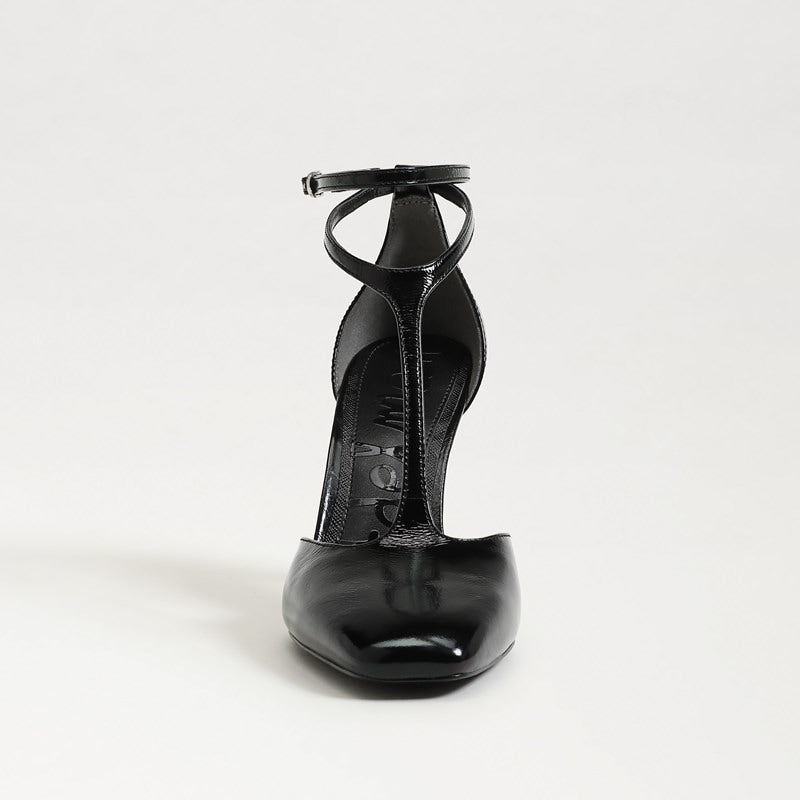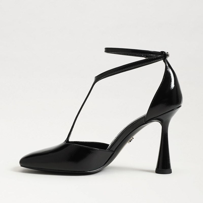 Refined and daring, the Everett heel features a sleek T-strap design and sculpted heel, perfect for elevating evening looks with a touch of vintage allure. Heel Height: 3.75 inches Toe: Pointed Material: Leather Insole: Synthetic