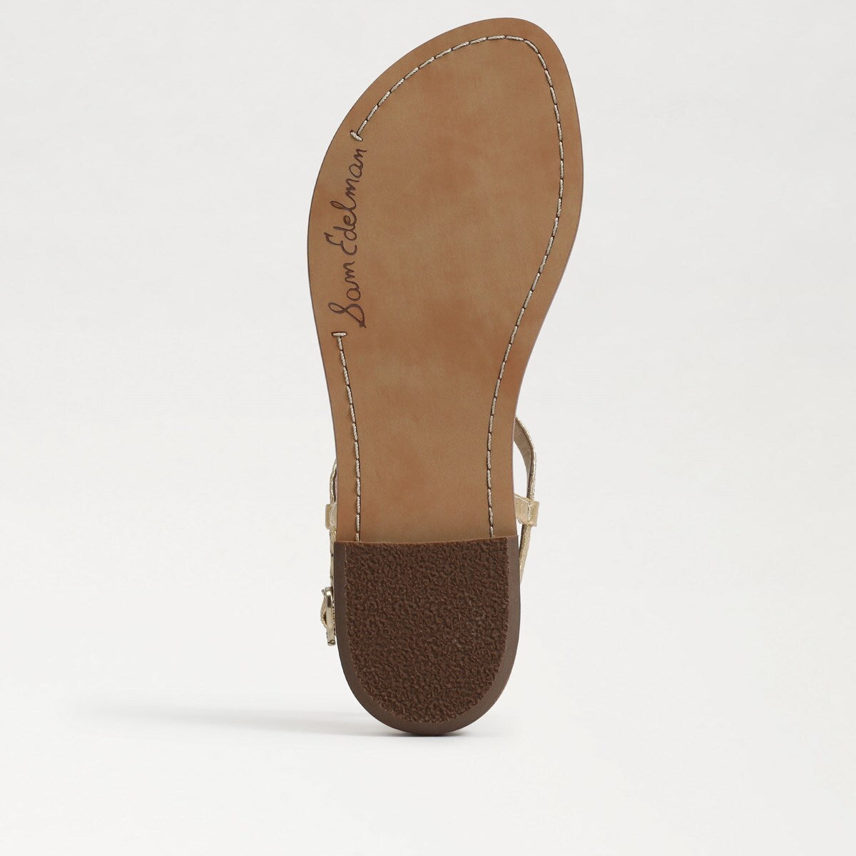 Our signature strap Gigi sandal with an antique twist. The enamel double-E signet complements this airy warm-weather staple. Heel Height: .62 inches Closure: Buckle Material: Leather & Synthetic Insole: Synthetic Featured in our Edelman Icons Collection