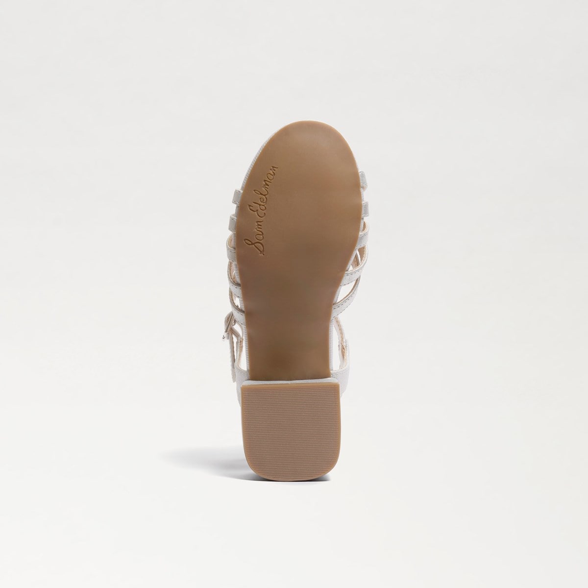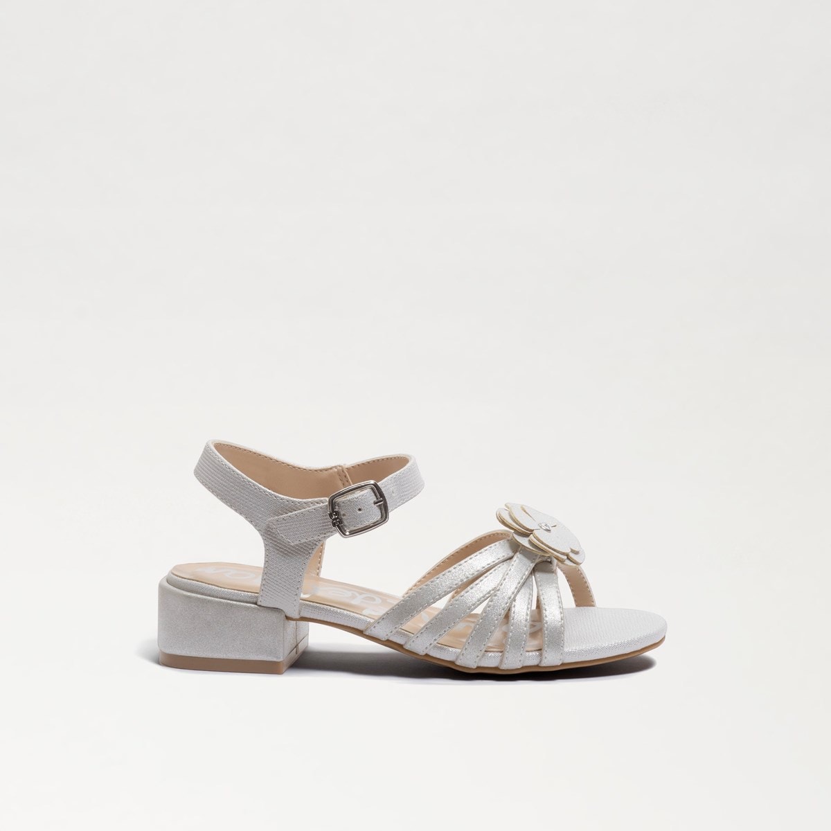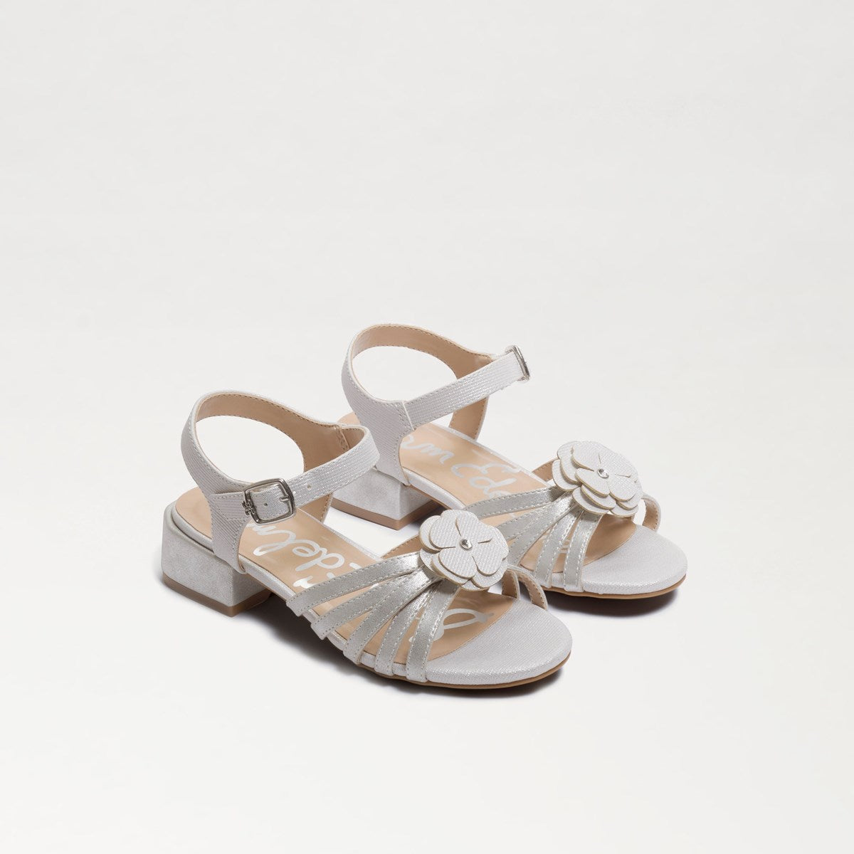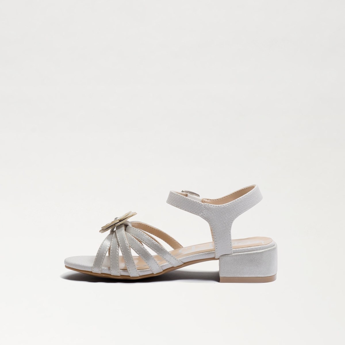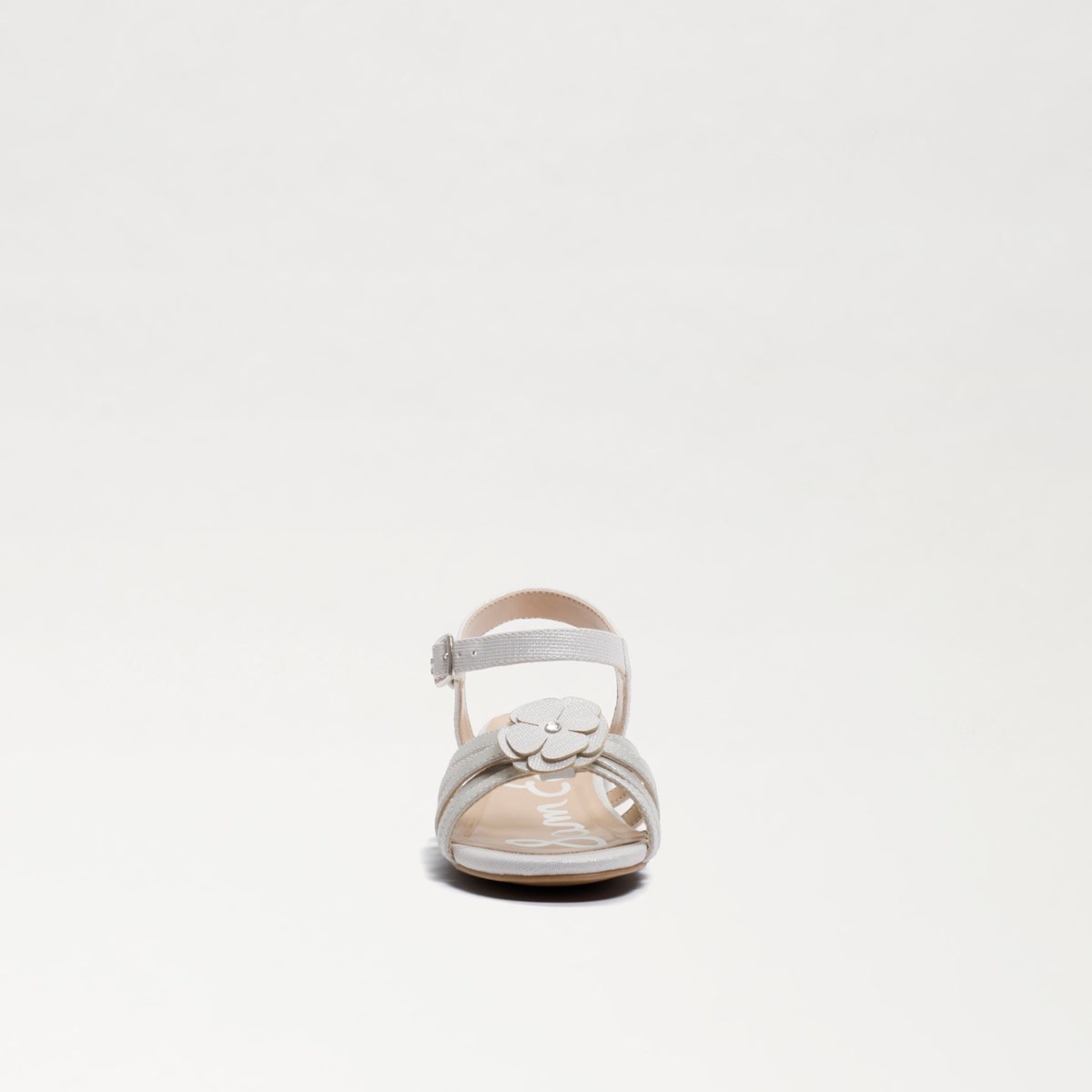 Sam Edelman low block heel sandal. Decorative floral applique Metallic buckle closure Heel Height: 1.5 inches Material: PU upper Insole: PU Non-skid outsole