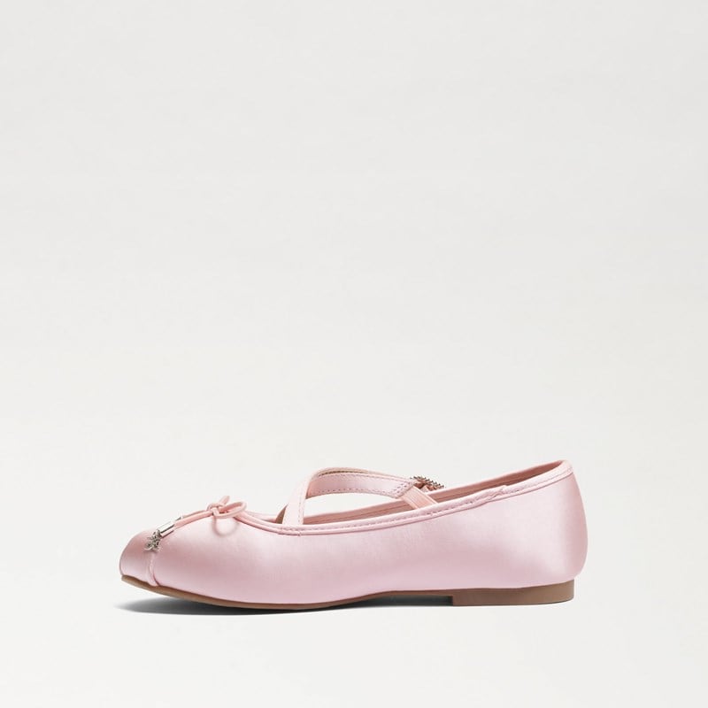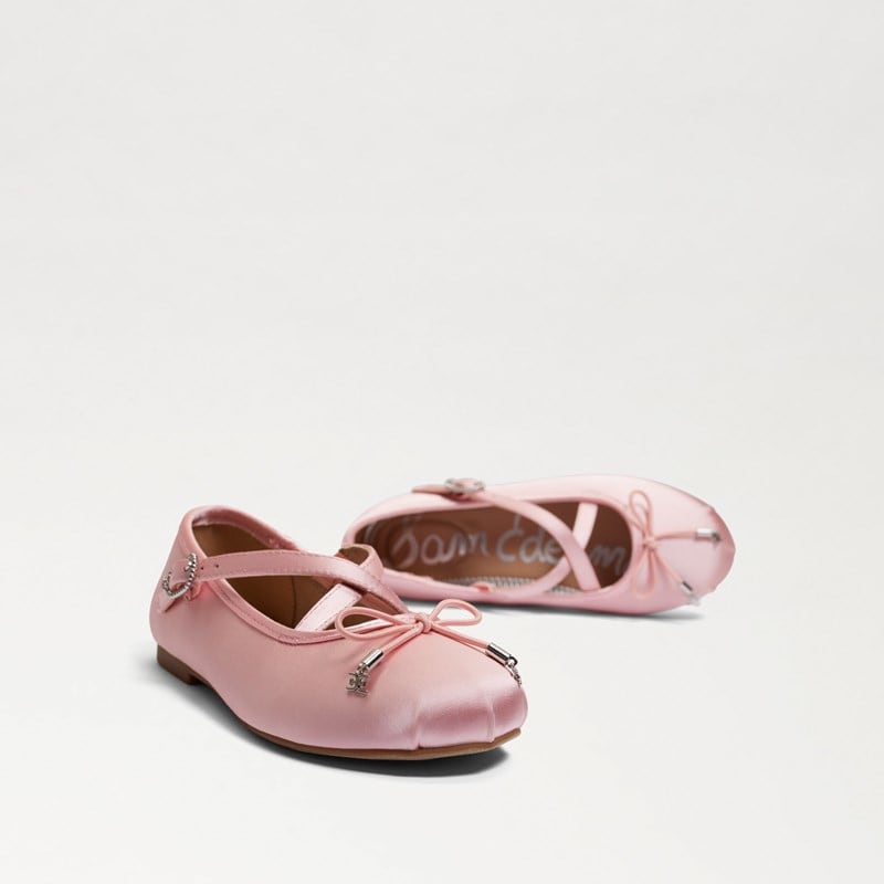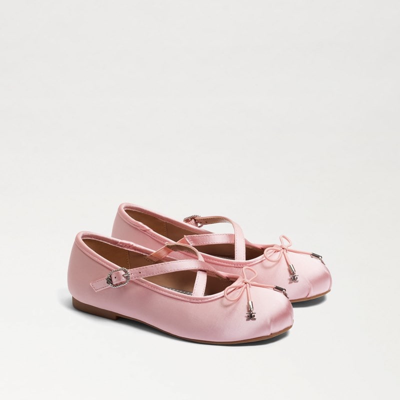 Sam Edelman crisscross ballet flat. Decorative bow embellished with logo charm aglets Metallic buckle closure Heel Height: flat Material: PU upper Insole: PU Non-skid outsole