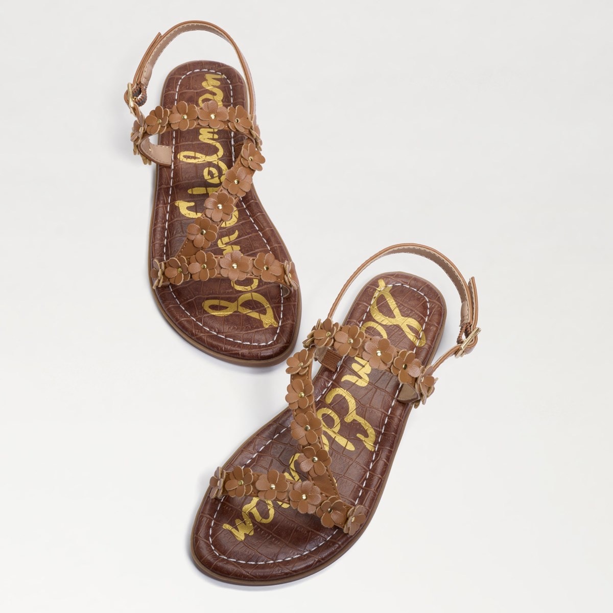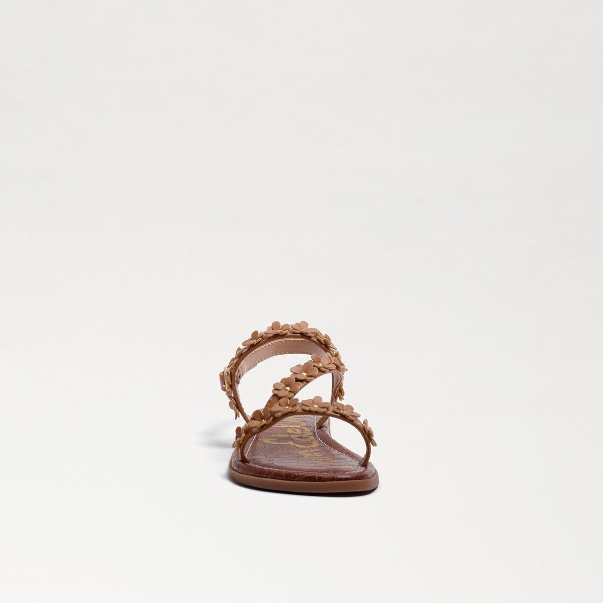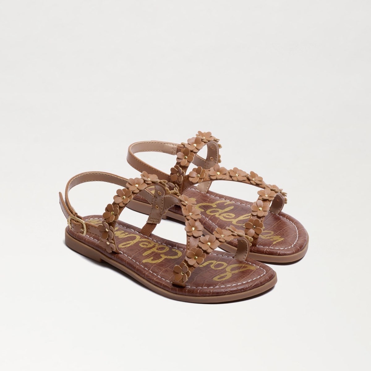 Sam Edelman asymmetrical gladiator sandal. Floral appliques Metallic buckle closures Material: PU Insole: PU Outsole: non-skid
