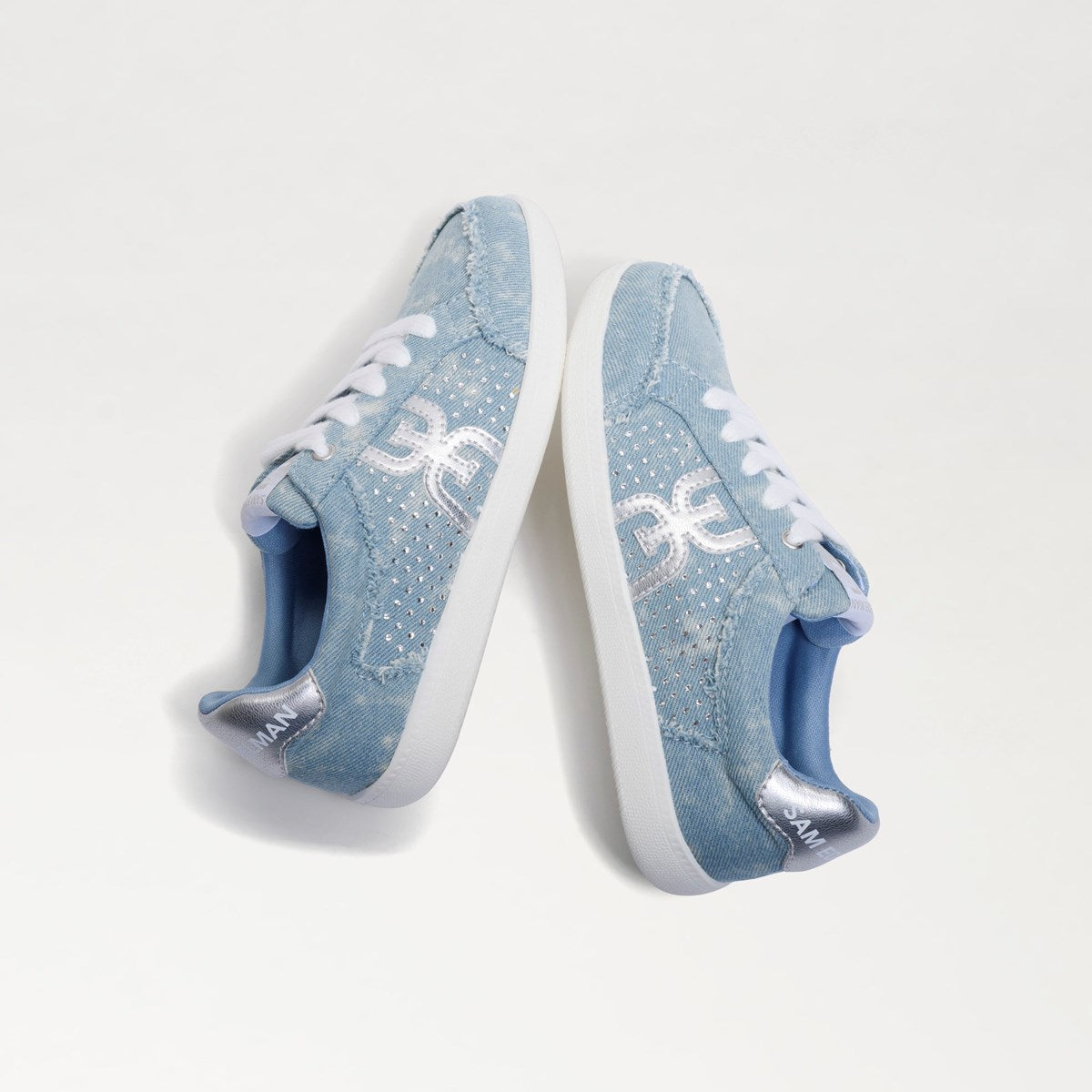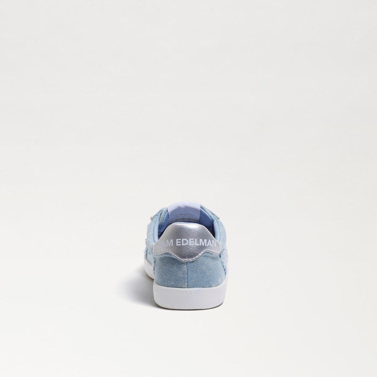 Sam Edelman denim sneaker. Crystal embellishment Lace-Up Heel Height: flat Material: Metallic fabric / PU upper Insole: PU Outsole: Non-skid