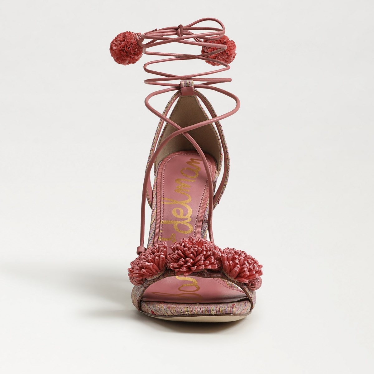 Meet the Leela, a chic lace-up sandal with playful pom-pom accents. With a high stiletto heel and elegant lace up ties, this sandal will be your go-to for making a bold statement at any soirée. Whether you're dressing up or keeping it casual, the Leela offers the perfect balance of fun and sophistication. Heel Height: 4.000 in Toe: Open Toe Closure: Buckle Material: Fabric, Other Insole: Rubber