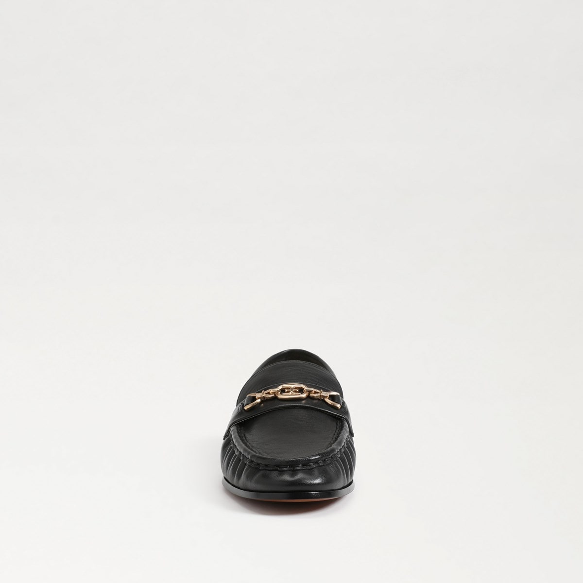 Evoke smart, vintage vibes in the '80s influenced Lucca loafer with side ruching and horse-bit hardware. Heel Height: .93 CM Recommended to size down half a size Toe: Almond Toe Material: Leather Insole: Leather