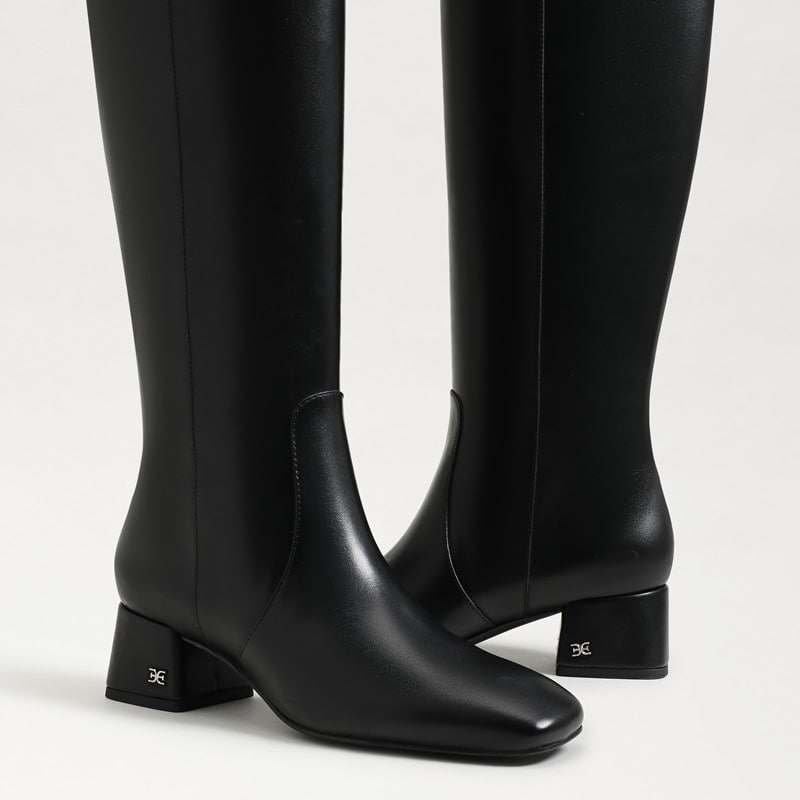Sleek and sophisticated, the Porter boot features a timeless knee-high silhouette with a subtle block heel. A must-have for effortless elegance in cooler seasons. Heel Height: 1.75 inches Toe: Almond Closure: Zipper Boot Height: 15.35 inches Calf Circumference: 14.17 inches Material: Leather Insole: Synthetic
