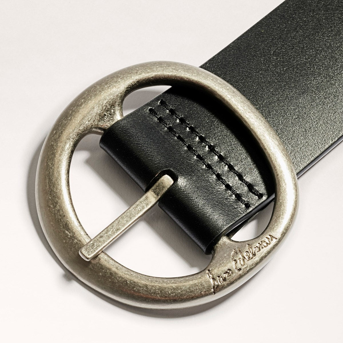 This reversible belt gives you two stylish looks with the flip of a buckle. The oversized organic shape center bar buckle flips from left to right to allow you to alternate between two strap sides that perfectly compliment your everyday style. 50 MM Reversible Belt Two-In-One reversible style Organic circular shape center bar buckle Flip buckle over from left to right to alternate strap sides 2 inch wide belt strap 7 holes included for an adjustable, comfortable fit This belt is best worn sitting on your hips Genuine leather/ Synthetic lining Size: Small(4-6) 33 inches Size: Medium(8-10) 35 inches Size: Large(12-14) 38 inches Size: X-large(14-16) 41 inches