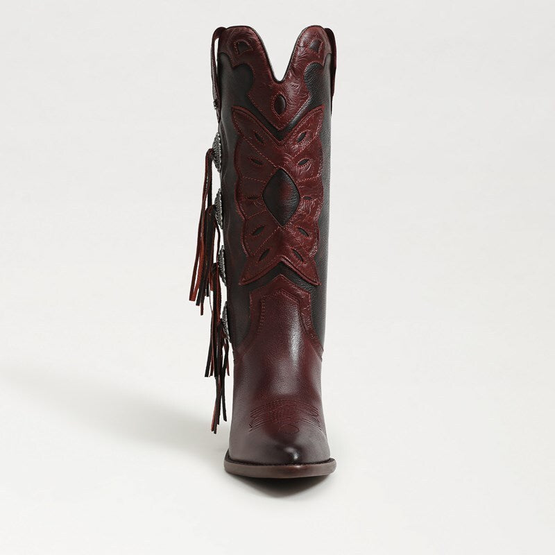 A bold take on western styling, the Rhett boot features fringe detailing and intricate stitching for a statement-making cowboy boot. Heel Height: 1.375 inches Toe: Pointed Closure: Adjustable/Pull Boot Height: 15.354 inches Calf Circumference: 14.173 inches Material: Leather Insole: Synthetic