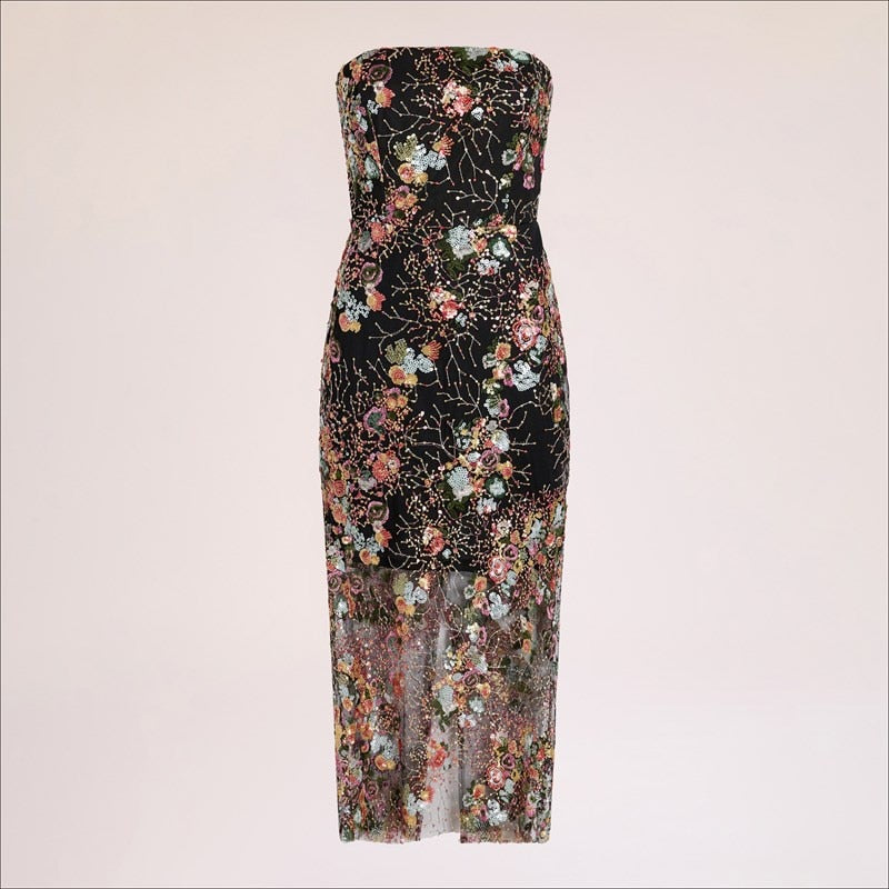 Strapless Floral Midi Dress