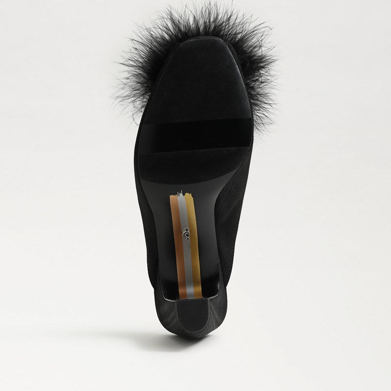 All eyes on you. The Witney mule adds playful drama with a bold faux fur pom, perfect for dressing up denim or going full glam. Heel Height: 3.5 inches Toe: Round Closure: Buckle Material: Synthetic Insole: Synthetic
